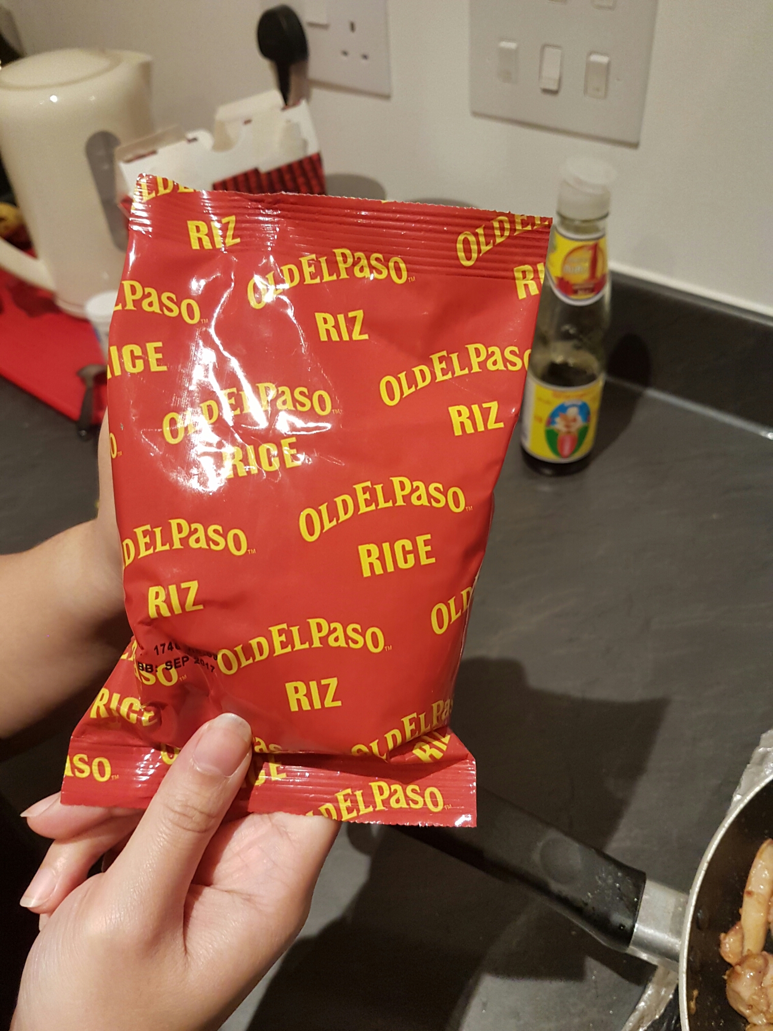 Old el paso one pan rice meal with garlic.