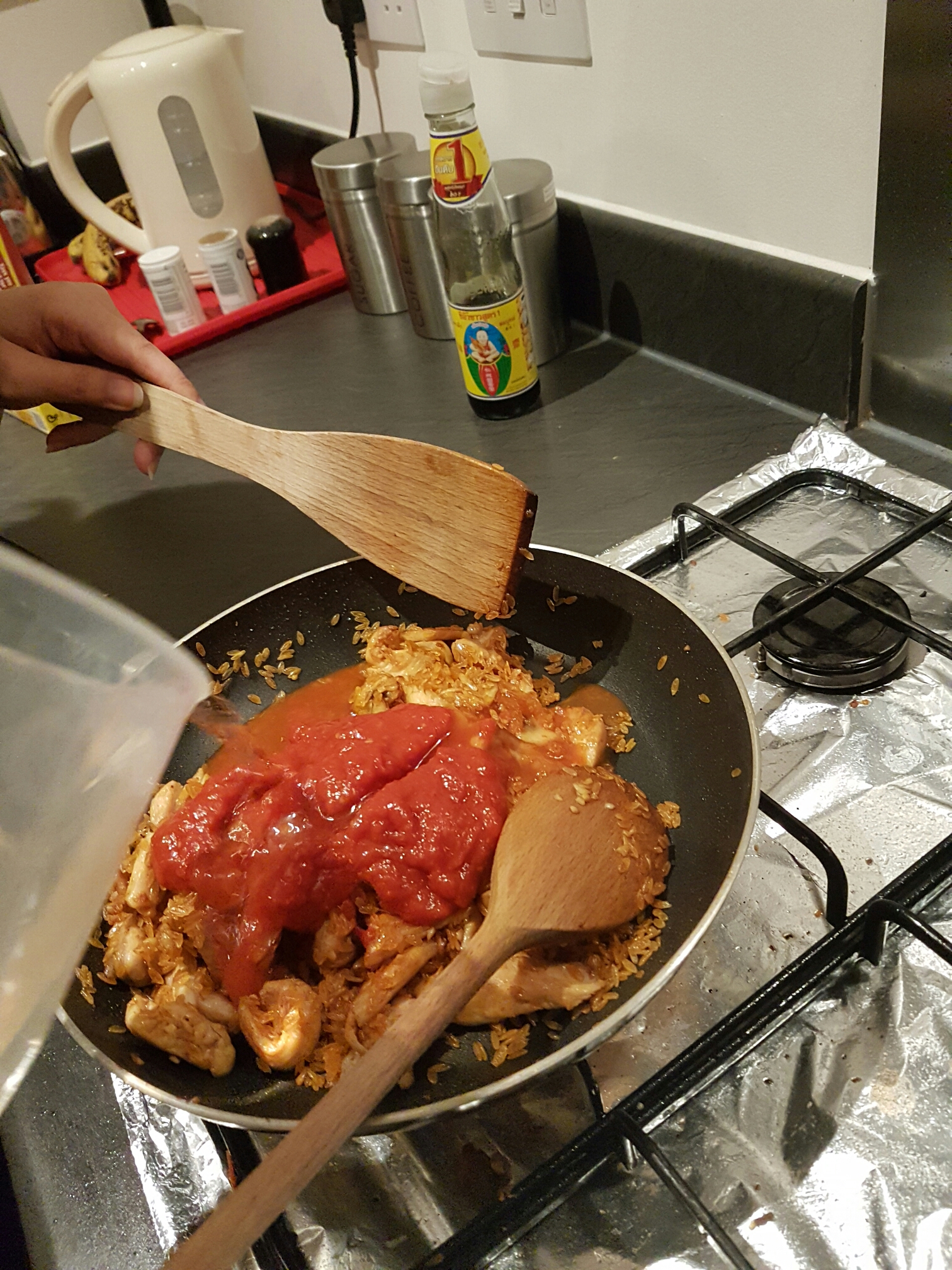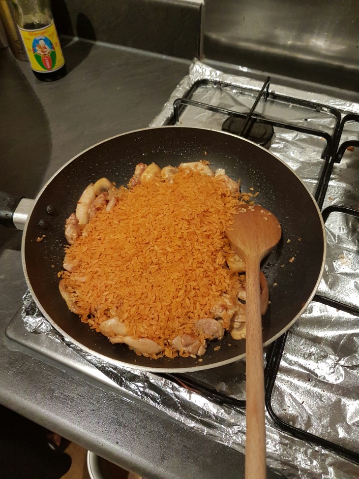 Theres a friday night favorite of ours and that’s old el paso one pan rice with garlic, but we give it a bit of an extra kick and twist. The recipe calls for peppers but we think mushrooms work better but you can switch it up if you like!