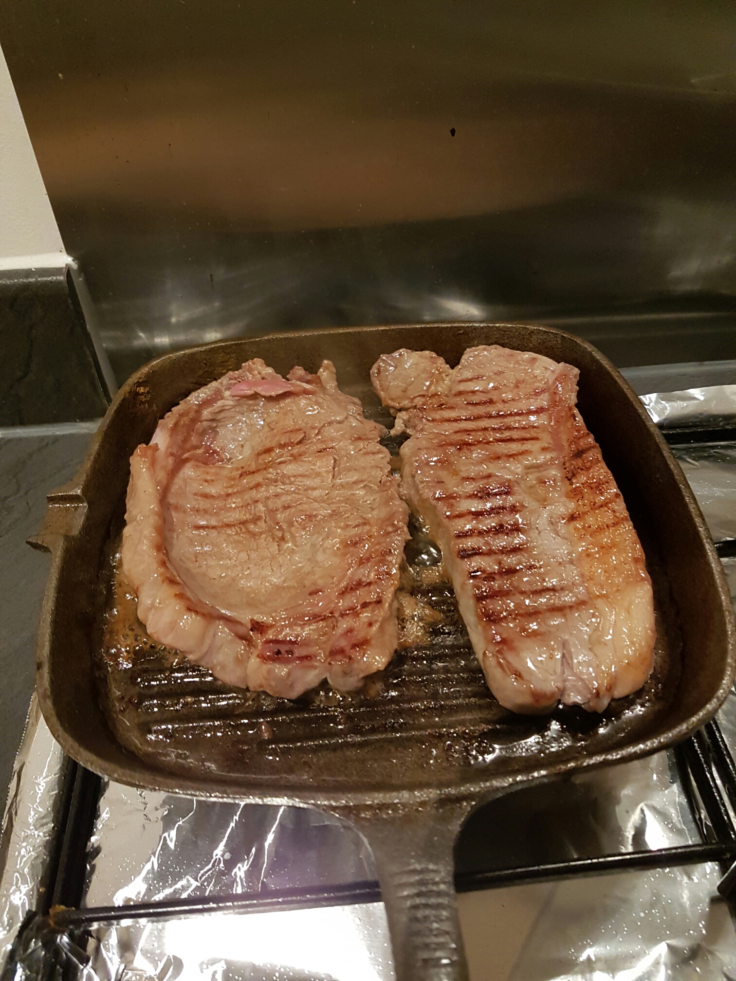 After the hour has passed get the cast iron pan hot and fry the steaks 5 mins each side until it’s medium done.