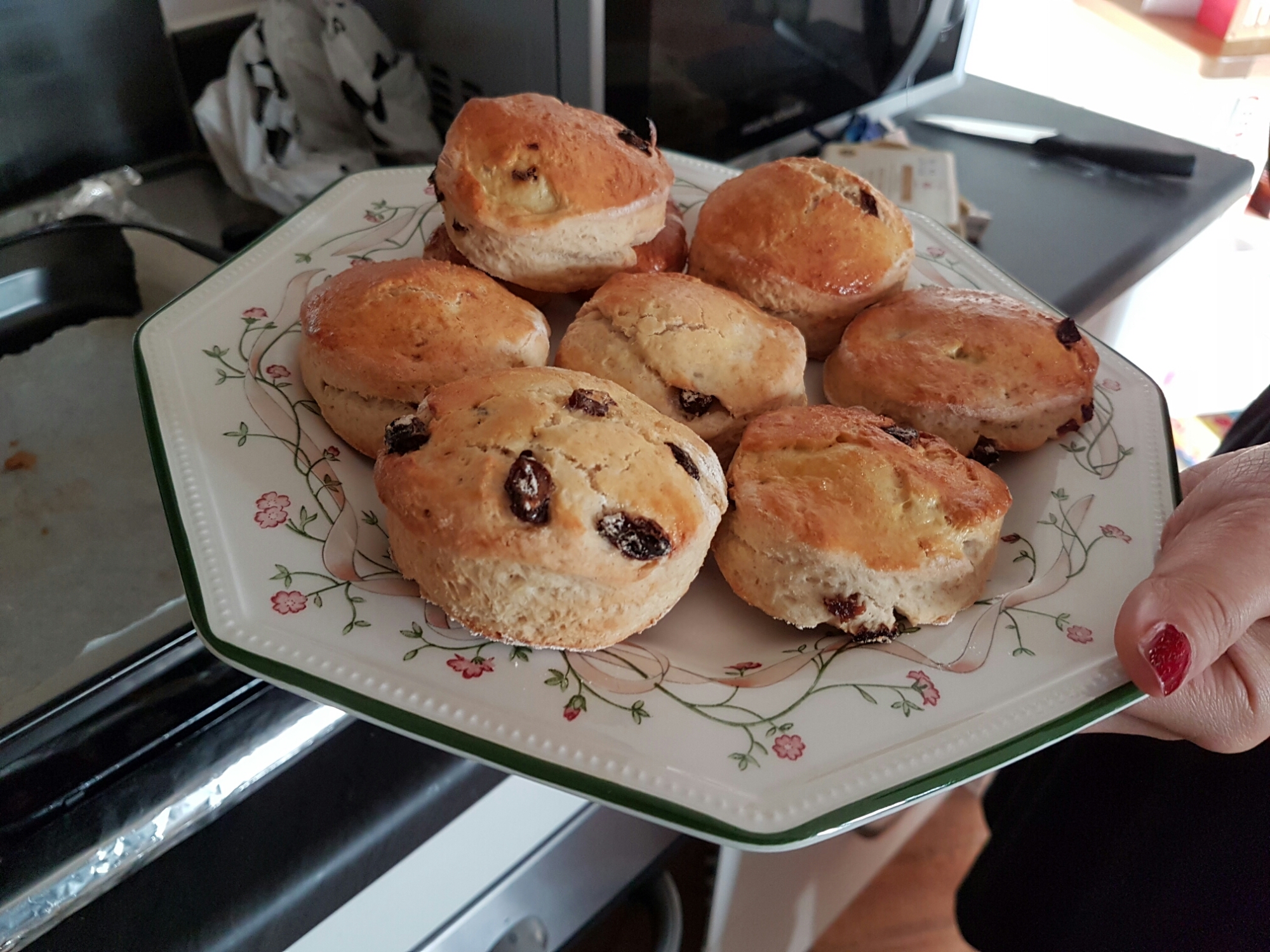take them out of the oven to cool and put butter jam or clotted cream on them and enjoy!